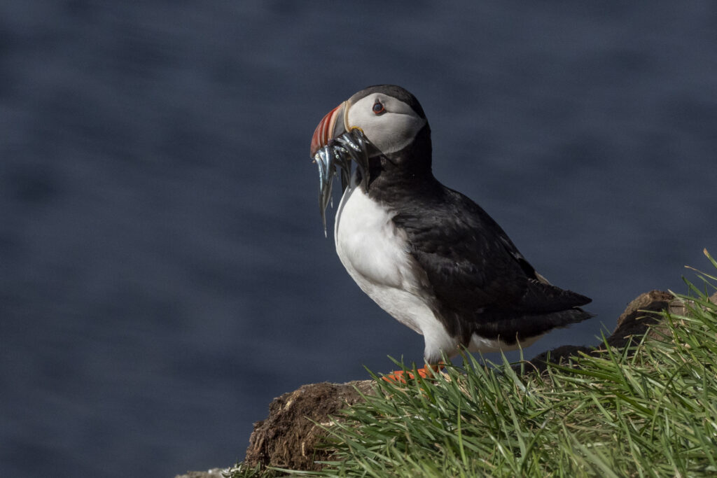 In Scotland, puffins come ashore from late April until the middle of August. Once the female lays her egg, she will share the incubating duty with her mate until it hatches. It is in July that you'll tend to see puffins carrying beak-fulls of fish to their nests to feed their young. Like the gentoo penguin, Atlantic puffins will often reunite with the same mate each year.